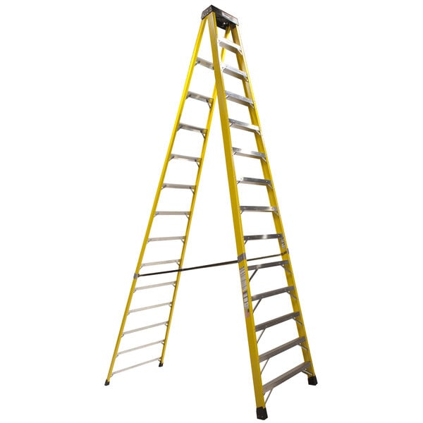 This OSHA- and ANSI-certified ladder outperforms its competitors by offering a comfortable 20 degree climbing angle that reduces fatigue. Plus, its non-conductive yellow side rails reduce hazards associated with electrical work. A copolymer molded top cap conveniently holds small tools and parts while also resisting impact for added convenience. Transporting the ladder is easy thanks to heavy-duty, pinch-resistant internal spreaders that prevent damage, making this ladder a durable and trustworthy addition to any establishment.