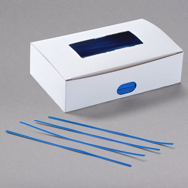 These 7" blue twist ties are sure to come in handy for a variety of applications. They provide a simple yet effective way to seal plastic bags. With their centered steel wire and laminated coating to resist rust, these twist ties are dependable for use at your party, social gathering, or catered event!