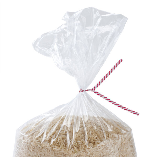 These 7" red stripe twist ties are sure to come in handy for a variety of applications. They provide a simple yet effective way to seal plastic bags. With their centered steel wire and laminated coating to resist rust, these twist ties are dependable for use at your party, social gathering, or catered event!