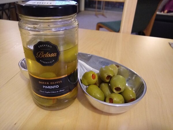 "The Belosa 12 oz stuffed queen olives are stuffed with pimento. They're salty, but delicious alone, in a cocktail, on a salad, on a charcuterie board, etc..."