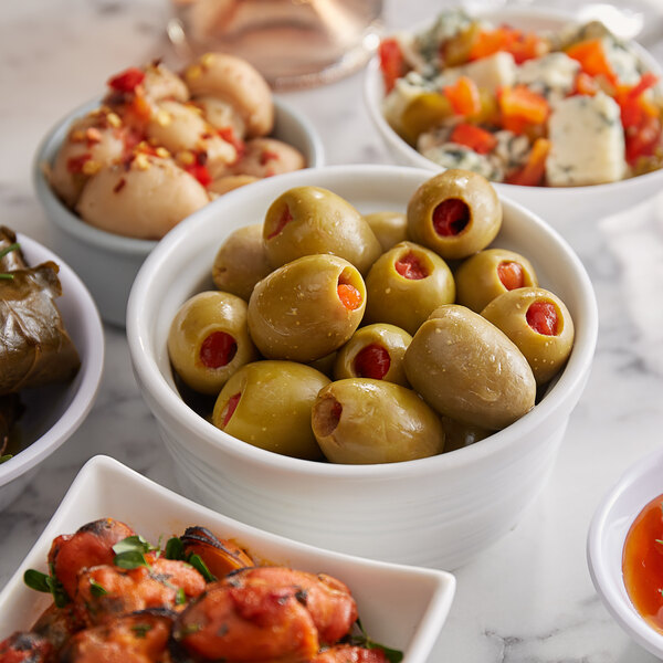 These premium, hand-stuffed queen olives are a perfect addition to your bar's signature Bloody Mary! These savory, spicy olives are bursting with tomato flavor that perfectly complements the taste of this popular brunch beverage. You can also try adding these Bloody Mary olives to dirty martinis and other savory cocktails for an unexpectedly delicious garnish!