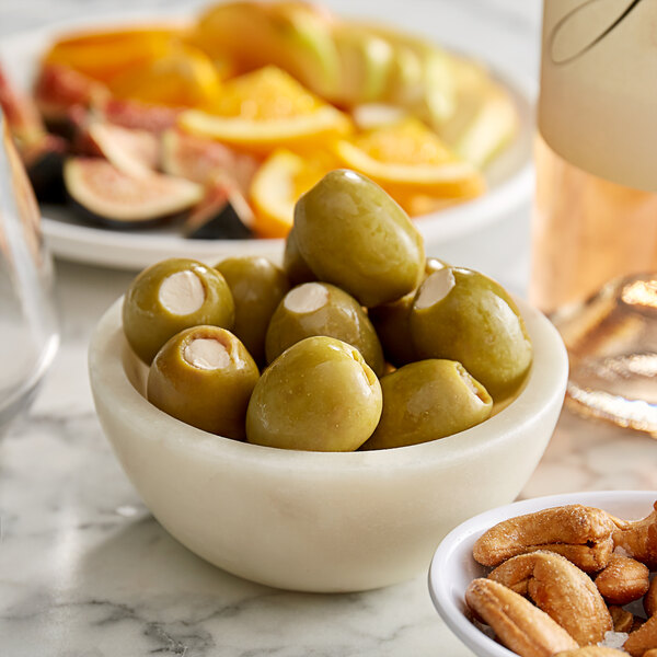 Great olives! Have never seen a stuffed almond type, so it was a must when I placed the order.. So glad I did, the almonds are crisp and just the right texture. Will definitely buy again!!