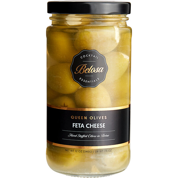 Though they have plenty of applications behind the bar, these olives are also a perfect addition to your food menu! Their delicious flavor and premium appearance make them perfect for displaying on a charcuterie board alongside sliced meats, cheeses, and pickled treats like cocktail onions and cornichons. Toss these feta cheese stuffed olives on your signature Greek salad for a memorable treat! They also make a great addition to classic Mediterranean pasta dishes. No matter how you choose to present them, these large, hand-stuffed queen olives are sure to become a favorite in your kitchen!