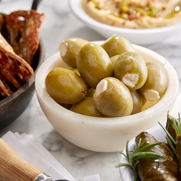 These premium, hand-stuffed queen olives are a perfect addition to your bar's signature dirty martini! They mingle perfectly with the flavors of vodka or gin, vermouth, and olive brine to create a unique take on this beloved cocktail. Beyond crafting an elegant dirty martini, these olives are a staple to your brunch's exclusive Bloody Marys and other savory cocktails! Offer these olives alongside other elegant snacks as a deliciously refined accompaniment to your wine tasting.
