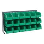 - Durable 16-gauge steel bench rack and polypropylene bins