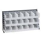 Quantum 36" x 8" x 19" Gray Steel Bench Rack with (18) 10 7/8" x 5 1/2" x 5" Red Bins QBR-3619-230-18RD