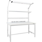 Equip your maintenance staff or industrial workshop with this BenchPro Kennedy Series 30" x 60" ESD LisStat laminate top adjustable workbench set with black frame and round front edge! Featuring a 1 1/4" laminate top, this workbench provides a perfect space for small projects and maintenance work. The top's smooth, rounded front edge ensures a comfortable working space for those leaning on or over the workbench for long periods of time. This model even features an ESD design, meaning the laminate top dissipates static electricity for sensitive electronic production applications.