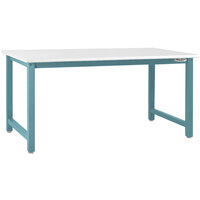 Equip your maintenance staff or industrial workshop with this BenchPro Kennedy Series 30" x 60" ESD LisStat laminate top adjustable workbench set with light blue frame and round front edge. Featuring a 1 1/4" laminate top, this workbench provides a perfect space for small projects and maintenance work. The top's smooth, rounded front edge ensures a comfortable working space for those leaning on or over the workbench for long periods of time. This model even features an ESD design, meaning the laminate top dissipates static electricity for sensitive electronic production applications.