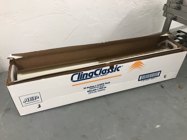 Big bad Plastic Wrap. But awesome, not bad at all. This stuff is great. I can wrap entire Husky totes with this thing, perfect for your extremist chefs out there