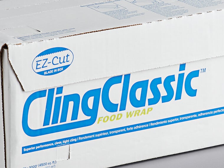 This Cling Classic plastic food wrap is the best out there! The serrated cutter works great, without being too sharp to hurt employees. We highly recommend!