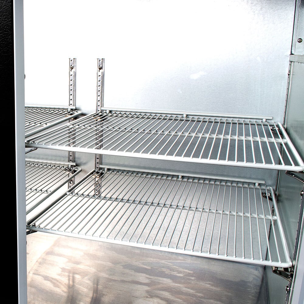 Self-closing doors feature magnetic gaskets for a tight, reliable seal and can be locked to prevent theft and tampering. Four shelves are included that can be adjusted to accommodate various bottle sizes, or taken out altogether to accommodate kegs.