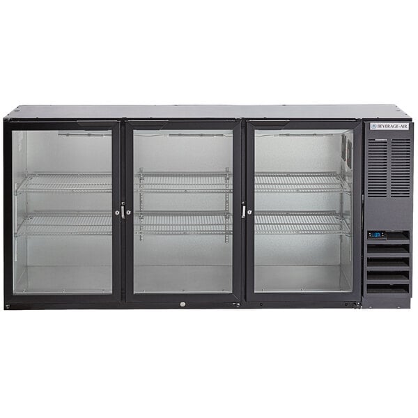 Beverage-Air BB72HC-1-G-B 72" Black Underbar Height Glass Door Back Bar Refrigerator