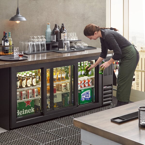 Beverage-Air BB72HC-1-GS-B 72" Black Underbar Height Sliding Glass Door Back Bar Refrigerator