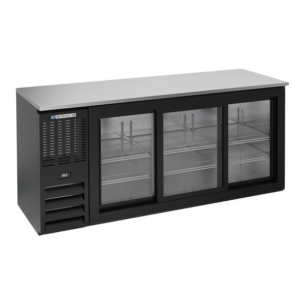 Beverage-Air BBN72HC-GS-B-ALT 72" Black Underbar Sliding Glass Door Shallow Depth Back Bar Refrigerator