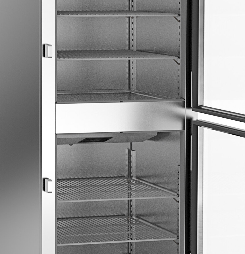 However you use it, the unit provides ultimate convenience in any operation with limited space. As soon as your cold storage needs change, update the unit accordingly. By modulating its coil temperature and using expansion valve technology, the unit will quickly reach your desired set point and stay there, providing a stable environment for storing cold or frozen product. This particular unit provides 9 cu. ft. of storage space in each section and comes standard with a total of 4 epoxy-coated shelves.