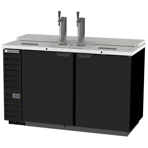 Featuring (2) 3" insulated towers with 1 faucet, this kegerator makes it easy to serve your patrons cold, refreshing, perfectly drafted beer. The club top makes it easy to store 6 packs or frost glasses beneath 2 stainless steel sliding lids for added convenience and service options. This kegerator can hold (3) 1/2 size kegs. Boasting a durable, steel construction with a wear-resistant black vinyl finish, this kegerator withstands the daily demands of your busy bar, pub, or catered event. The top is made of heavy-duty stainless steel for easy cleaning and maintenance. Plus, the drip tray helps contain liquid for a clean, mess-free operation.