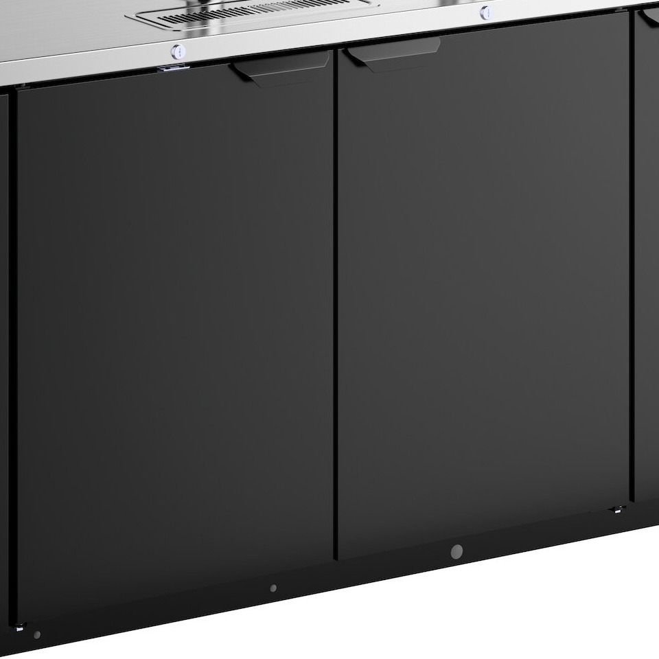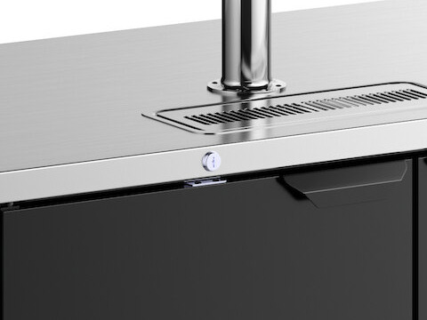 Boasting a durable, steel construction with a wear-resistant black vinyl finish, this kegerator withstands the daily demands of your busy bar, pub, or catered event. The top is made of heavy-duty stainless steel for easy cleaning and maintenance. The interior construction includes galvanized steel walls and ceiling, while the floor and door sills are both made from heavy-duty stainless steel to ensure years of long-lasting service and an easy-to-clean design.