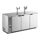 Thanks to its heavy-duty forced air refrigeration system, this Beverage-Air DD78HC-1-S-072 1 double and 1 triple tap kegerator beer dispenser with left side compressor helps you serve the coldest beer in town. Featuring 2 tap towers with 2 and 3 faucets each, this kegerator makes it easy to serve your patrons cold, refreshing, perfectly drafted beer. An all-stainless steel tower design and antimicrobial tubing allow you to serve beer, wine, or coffee without the need to retrofit later, and the tubing protects against common beverage-spoiling bacteria. This kegerator can hold (4) 1/2 size kegs. A stylish and heavy-duty stainless steel exterior is paired with a stainless steel top for a polished, professional appearance. The interior construction includes galvanized steel walls and ceiling, while the floor and door sills are both made from heavy-duty stainless steel to ensure years of long-lasting service and an easy-to-clean design. Plus, the drip tray helps contain liquid for a clean, mess-free operation.