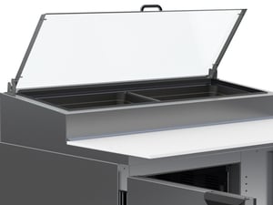 We recently purchased the DP46HC and have come to regret not doing it sooner. First and foremost, it looks very nice. Couple the looks with its construction, and you have a very nice, durable prep station with the DP46HC. The refrigeration portion is both spacious and organized, such that everything is easily within one's reach. I recommend this unit if you are in the market for a solid pizza prep unit.