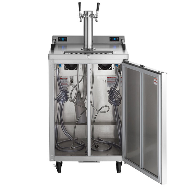 Store and serve the coldest beer in town, thanks to this Beverage-Air DZ24-1-S (1) double tap dual zone kegerator beer dispenser.