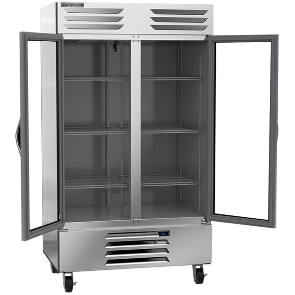 This Beverage Air FB44HC-1G 47" two section glass door reach-in freezer is the perfect solution to cold storage in your restaurant kitchen, bakery, or other commercial food preparation area.