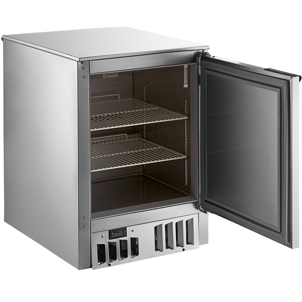 The system boasts a 1/4 hp compressor and uses environmentally-friendly R-290 refrigerant. This unit chills glasses and plates at -10 degrees Fahrenheit. Integrated coils automatically defrost, while a built-in automatic and non-electric condensate evaporator system eliminates the need for any floor drains or additional plumbing.