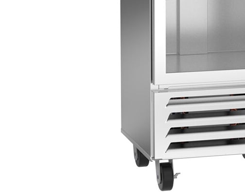 Because the refrigeration system is bottom mounted, it raises the interior for more ergonomic loading. It also makes the system easy to access for service and maintenance. At the end of the day, the freezer is easy to clean around thanks to its 6" casters. Plus, since 2 of the casters feature brakes, it remains in place for stationary use. A 115V electrical connection is required for operation.