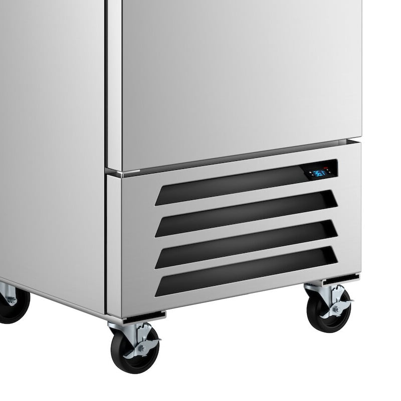 Boasting a stainless steel exterior and interior, smart design features, and a durable refrigeration system that's rated for the hottest kitchens, this refrigerator is tough enough to withstand the rigors of any commercial environment! This refrigerator features foamed-in-place CFC and HCFC-free polyurethane insulation in the cabinet, which adds structural strength. Add to that its 27 cu. ft. of storage space and an easy to use electronic thermostat with digital display, and it's easy to see why this refrigerator is up to the task in virtually any application.