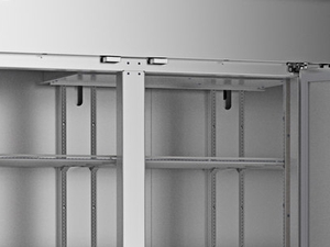 - Spring-loaded hinges with 120° stay open feature; magnetic door gaskets