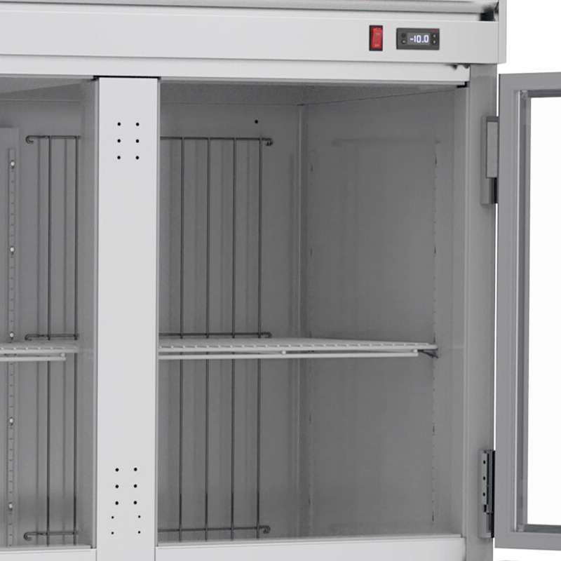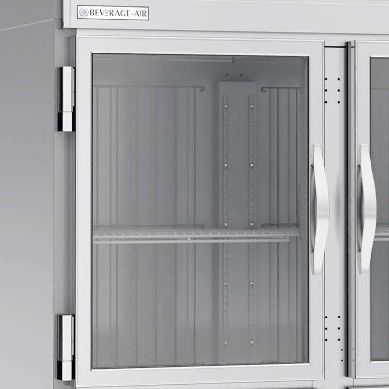For ample product visibility, it features 4 glass, self-closing half doors, each with a 120 degree stay-open feature. Because of the half door design, less air escapes when a door is opened, improving energy efficiency. Each door even includes a magnetic gasket for a positive seal and a field-reversible design to allow for changing from right hinge to left hinge.