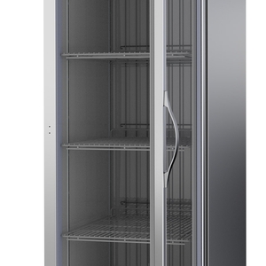 Perfect for restaurants, bakeries, and other commercial food settings, this refrigerator has a single glass door that provides immediate product visibility, allowing employees to see what they need to retrieve before opening the door and releasing cool air. Coming with a P finish, this unit has stainless steel front, sides, and a corrosion-resistant aluminum interior, making it durable for use in your commercial establishment and capable of withstanding inevitable spills or leaks.