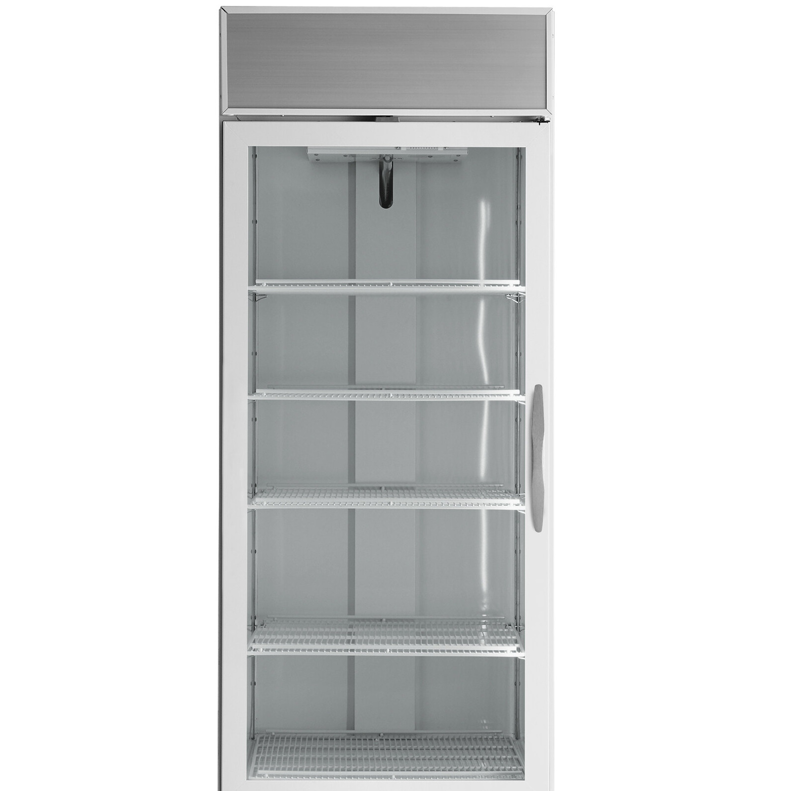 Made of heavy-duty steel with a white, baked-on finish, the unit's exterior is outfitted with a large, brightly lit sign panel. This sign panel helps you advertise the products inside, attracting customers' attention from across the store with ease. The interior walls are heavy-duty white coated steel for added appeal.