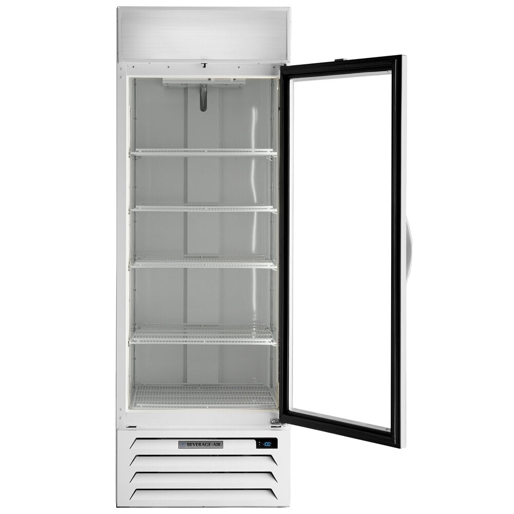The Beverage-Air MarketMax 27" white glass door merchandiser freezer with stainless steel interior makes displaying and holding product a breeze.