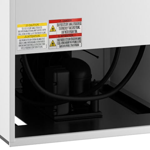 With a 1/4 hp compressor, the unit's refrigeration system uses R290 refrigerant to maintain temperatures between 36 and 38 degrees Fahrenheit. This specialized refrigerant has an ozone depletion potential (ODP) of 0 and a global warming potential (GWP) of 3, making it an environmentally responsible choice for your business. Operation is made easy with the full electronic control.