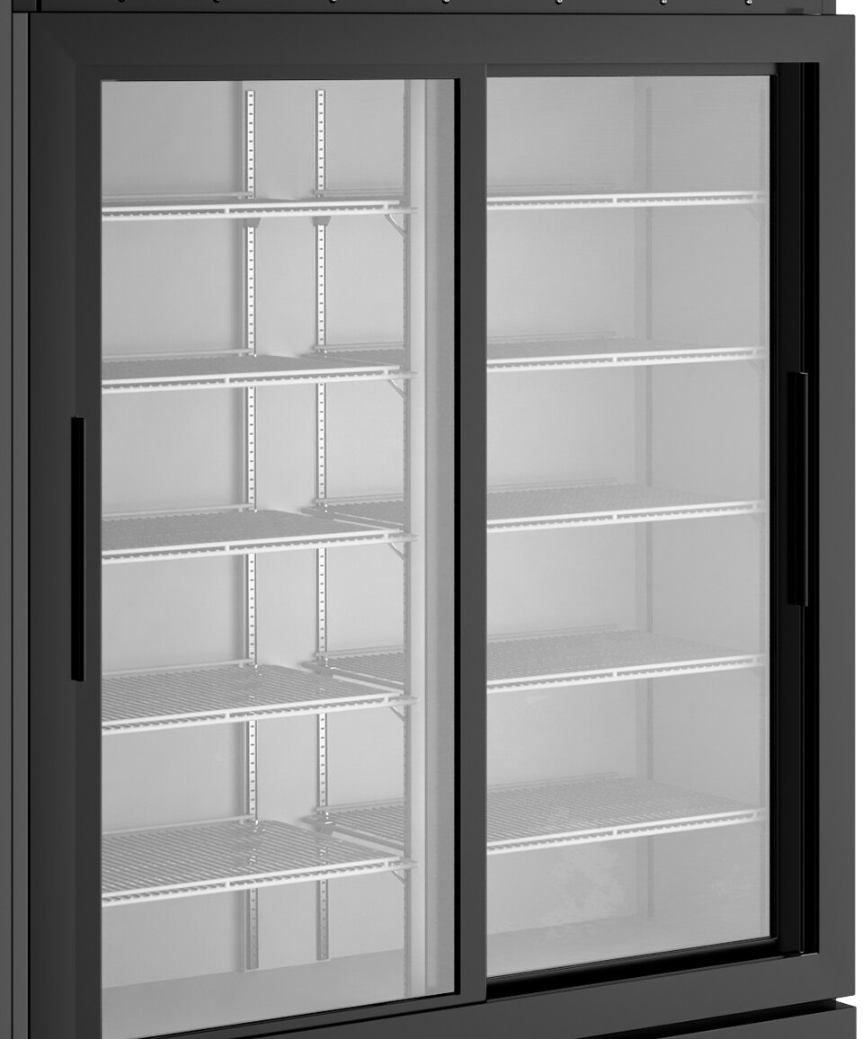 Two double pane sliding glass doors provide users with the ability to easily view refrigerated foods without needing to open each door, and both the inside and outside panes are tempered for added safety. This reduces energy loss and helps keep your compressor from working harder than it needs to! This unit comes standard with a hold open feature making it easy to restock shelves or change out inventory.