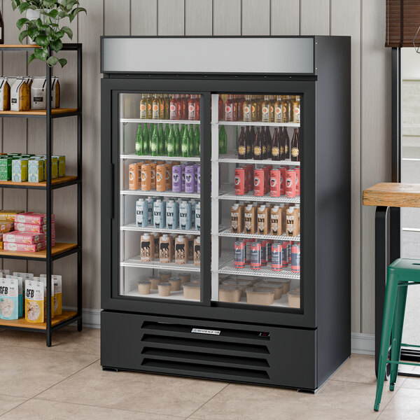 View All ItemsThis Beverage-Air MarketMax 52" black two section glass door reach-in merchandiser refrigerator is the perfect solution for cold storage and display.