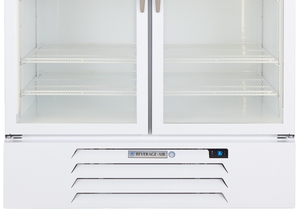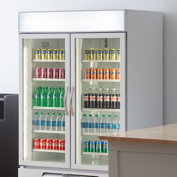 Boasting LED lighting, the bulbs in this unit provide cleaner, brighter, and longer-lasting illumination than fluorescent bulbs for optimum product presentation! Plus, its brightly lit sign panel catches customers' attention to direct them to ice-cold beers, bottled water, and soda. Its lowE double panel thermal insulated glass doors minimize energy waste and provide excellent product visibility. Since the top of the unit is solid, you can also use it as additional storage space for food pans, towels, and other supplies.