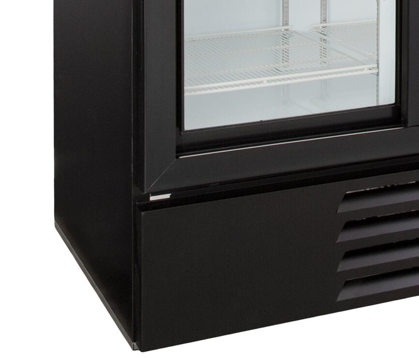 Three double pane glass doors provide users with the ability to easily view refrigerated foods, and both the inside and outside panes are tempered for added safety. This reduces energy loss and helps keep your compressor from working harder than it needs to! This unit comes standard with a hold open feature making it easy to restock shelves or change out inventory. Because the doors slide open, they also don't require the clearance that traditional doors do when they swing open.