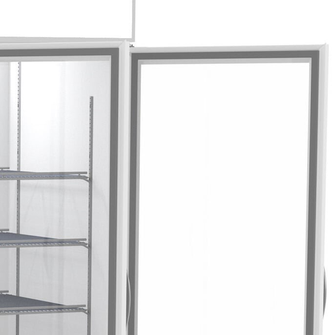 To keep product safe during off-hours, door locks come standard. Plus, the doors are not only self-closing to make sure they shut, they feature 120 degree stay-open features so they don't close in the middle of loading. Snap-in gaskets give the doors a secure seal too, and they're easy to remove for cleaning and replacement. As an added benefit, the bottom mount refrigeration system raises the interior floor of the unit to reduce bending and lifting when you are loading or unloading. This multi-door unit has one left hinge and two right hinges.