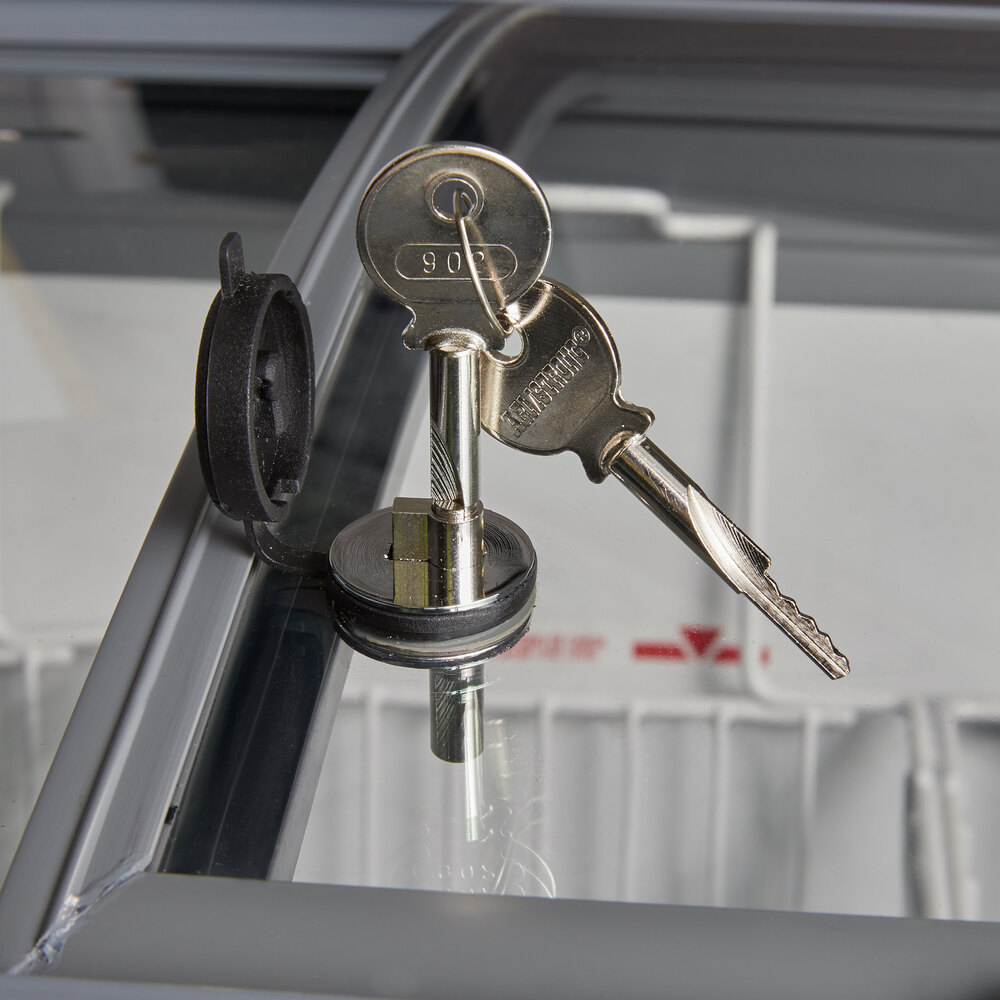 The doors are made of Low-E tempered glass for energy efficiency, can be removed for easy cleaning, and include locks to ensure product security during off-hours. Since the top of the freezer is curved, it both attracts attention and displays your products. 5 removable baskets even come standard to help you organize the frozen goods.