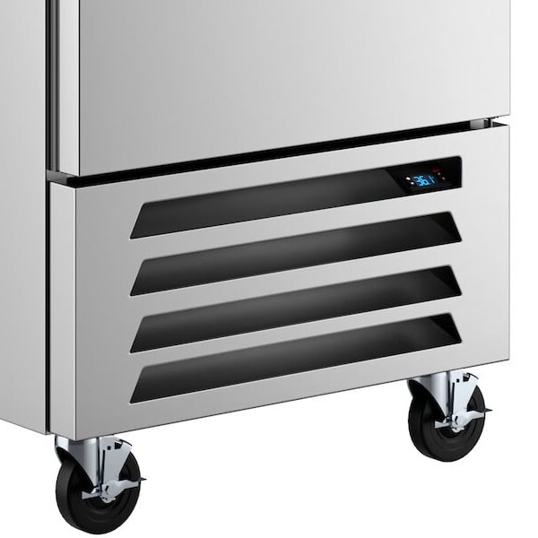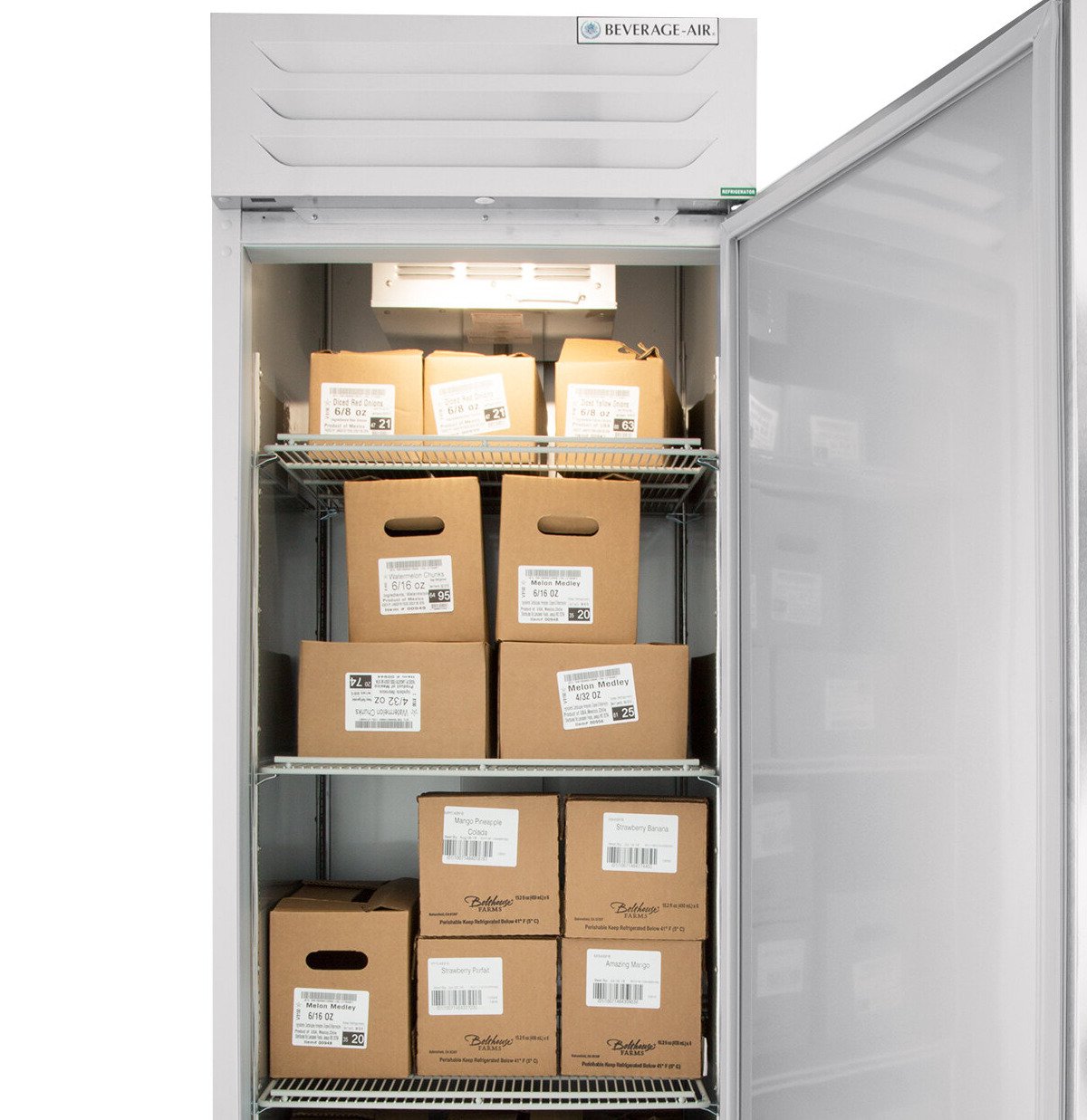 Perfect for restaurants, bakeries, and other commercial food settings, this refrigerator features a durable and clean-looking exterior with a stainless steel front door and gray painted sides. Featuring 23 cu. ft. of interior storage, it also provides enough room to store your product. Plus, the exterior grille that covers the bottom mounted refrigeration system is easy to remove for preventative maintenance or to allow necessary repairs. Inside, this unit features an aluminum interior with foamed-in-place CFC and HCFC-free polyurethane insulation for superior temperature retention, even in kitchens where ambient temperatures are high.