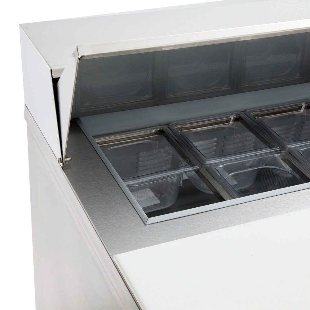 Boasting a 10" deep removable polyethylene cutting board, it's perfect for building your signature sandwiches, subs, and salads. The cutting board is conveniently placed for you to quickly grab all of your ingredients easily. Also, this is the perfect place to prep out your mise en place before service.