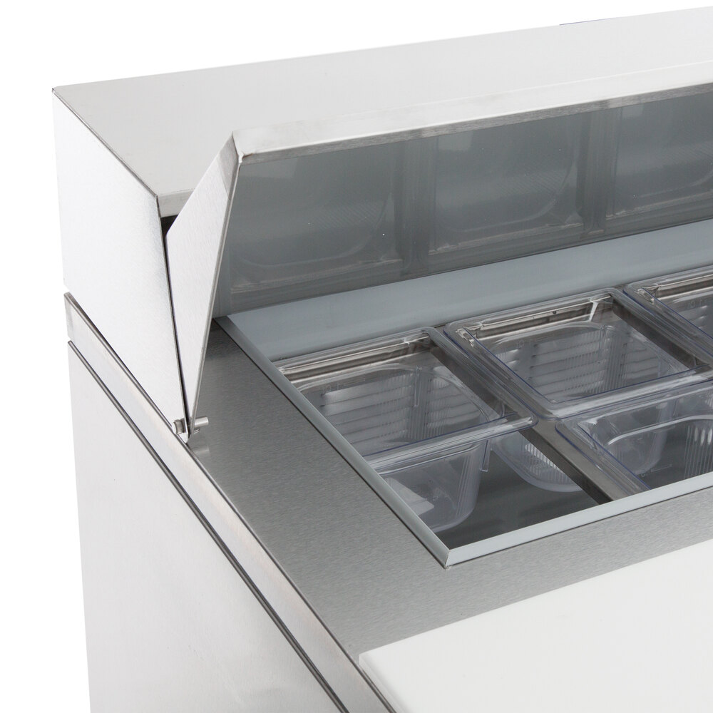 There is more room inside in the picture on the website than actual size. This would be good for a very small cafe that only has a few items they want to use this for. Before I ordered it, I asked the help desk if it would take larger food containers, if I could mix and match them. I was told yes, if I purchased extra bars. I bought the bars and the larger sized containers and both were useless. Never used the bars and if you want the half sized containers inside you lose a lot of room and will have wide open gaps. Doesn't do well with anything but the containers it comes with. The oversized cutting board is ridiculous. If the person using this pre table is short, they can't reach the back containers.