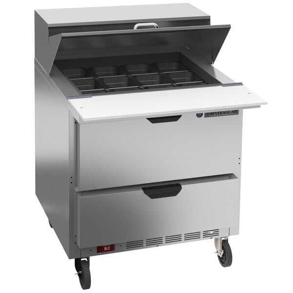 - Item #: 185sd36hc8c2Beverage-Air SPED36HC-08C-2 36" 2 Drawer 8-Pan Mega Top Refrigerated Salad Prep Table with 17" Deep Cutting Board