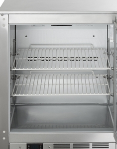 This freezer works amazing. It is in a food truck so space is limited. Even in the small space it has it will hold the temp at 0-2 degrees even when kitchen Temps are 100+ Degrees. door shuts it's self if opened less then 1/2 way. If opened past 1/2 it will stay open.
