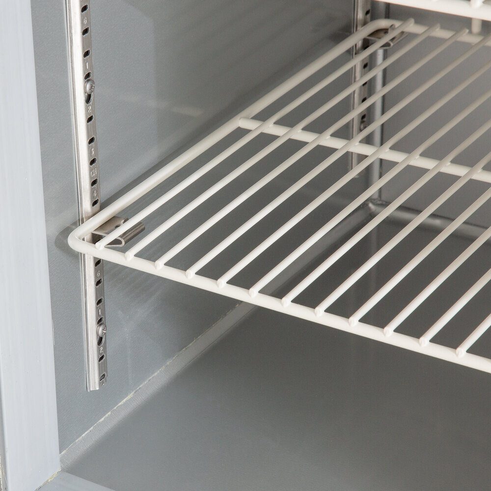 The interior of this unit comes with 2 epoxy-coated shelves to accommodate any storage need and to give you the flexibility to meet changing menus. And with CFC and HCFC-free cabinet insulation, it provides superior energy efficiency and temperature retention, too. This unit also runs on eco-friendly R-290 refrigerant, which has an ozone depletion (ODP) of 0 and a global warming potential (GWP) of 3, making it an environmentally-responsible choice for your business.