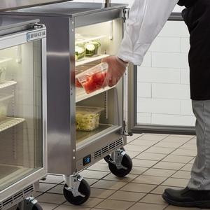 Because it's glass, this door provides excellent product visibility too, making it possible for the operator to view its contents without opening the door and releasing cold air. Interior LED lighting amplifies visibility for even easier product retrieval. Inside the cabinet, two adjustable epoxy-coated wire shelves create corrosion-resistant storage to help keep your ingredients and prepared food organized.