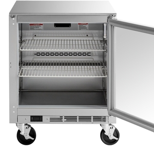As an undercounter model, this unit features a 1/2" thick sub-top. It also boasts a sturdy stainless steel front, top, and sides to withstand the demands of a busy commercial kitchen. A corrosion-resistant, aluminum interior likewise fortifies the cabinet, providing extra durability.