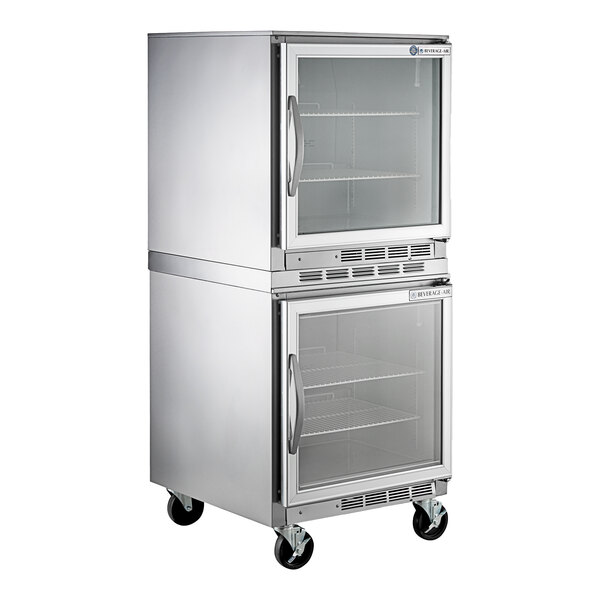 - Item #: 185ucrf27agkBeverage-Air UCF27AHC-25 and UCR27AHC-25 Double Stacked 27" Glass Door Undercounter Freezer and Refrigerator with 6" Casters