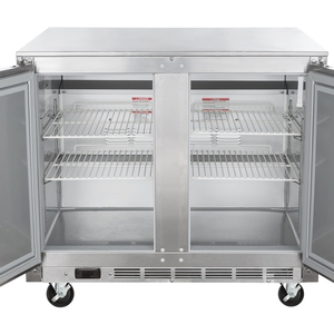 This unit features field reversible doors to make adjusting this unit to your workflow easier. The cartridge style hinges eliminate door sagging and are great for withstanding weight when product is being loaded and unloaded. The interior of this unit comes with 4 epoxy-coated shelves to accommodate any storage need and to give you the flexibility to meet changing menu needs.